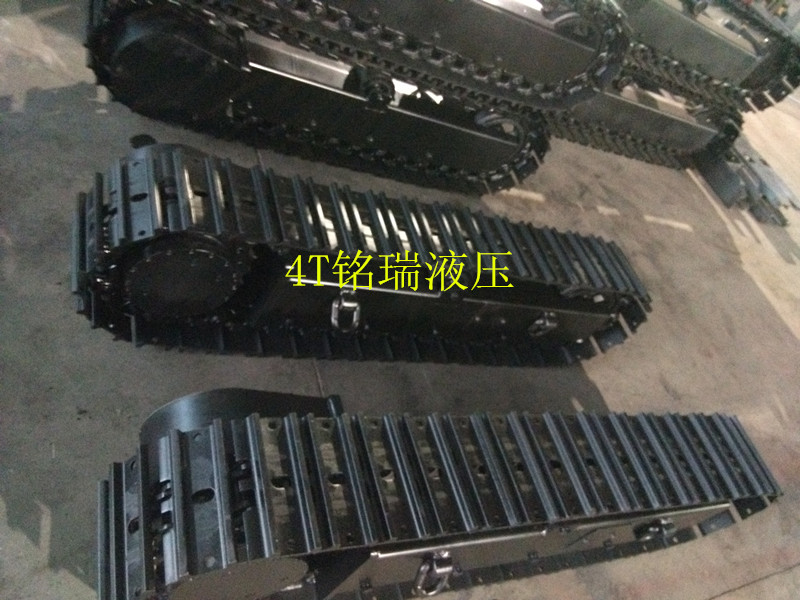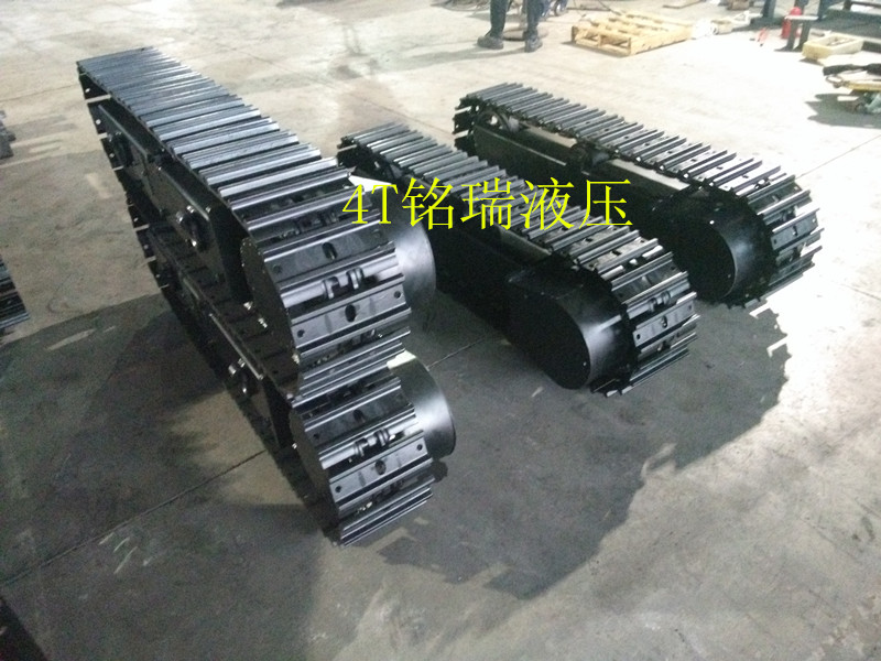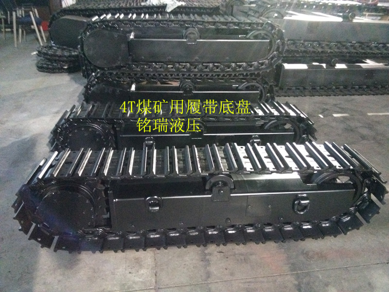 適用機型:坑道鉆機,載重4噸,工作壓力:20MPA,長度1800長,板寬230,行駛速度:1-3公里每小時,采用柱塞馬達加減速機,機械制動。