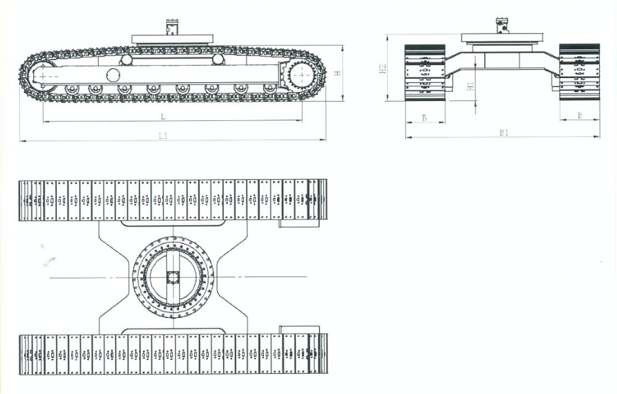 此款產(chǎn)品適用于大型挖機(jī)和打樁機(jī), X形棟梁增大底盤(pán)的強(qiáng)度,增大承載力度,采用低速大扭矩內(nèi)藏式行走減速機(jī)驅(qū)動(dòng),外觀(guān)精致細(xì)巧??筛鶕?jù)客戶(hù)要求訂做。